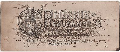 1920-1930s Phoenix Insurance Co Frederick Md Advertising Blotter Bouldin Freeman