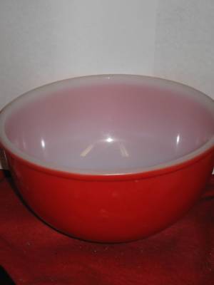 FIRE KING RED OUTSIDE WHITE MILK GLASS MIXING BOWL
