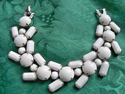 Vintage White Milk Glass Bracelet Signed Weiss