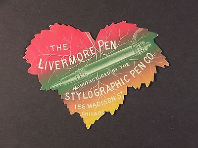 c. 1885,The Livermore Pen, Stylographic Pen Co., Chicago, die-cut, trade card