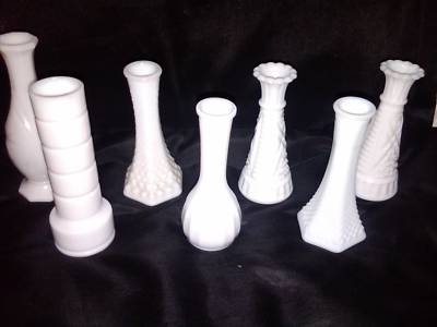 LOT of 7 Milk Glass Bud Vases Unique ~ 6"