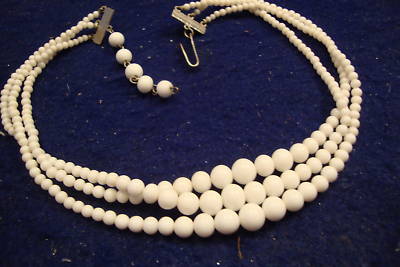ESTATE 1930'S MILK GLASS MULTI STRAND NECKLACE