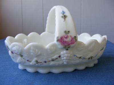 Milk glass basket with flowers