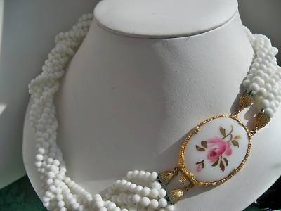 Vintage Cameo & White Milk Glass 8 Strand Necklace