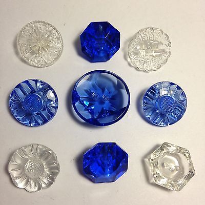 Vintage Depression Era Glass Buttons Fancy Blue & Crystal Button Lot *PD3
