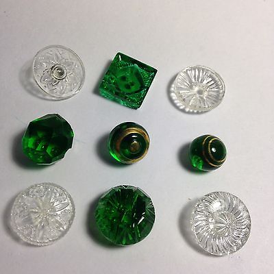 Vintage Depression Era Glass Buttons Fancy Green & Crystal Button Lot *PD21
