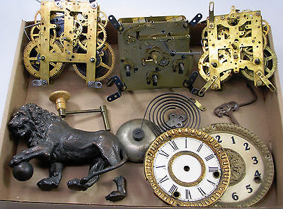 LOT OF ANTIQUE CLOCK MOVEMENT DIALS CASE PARTS REPAIR