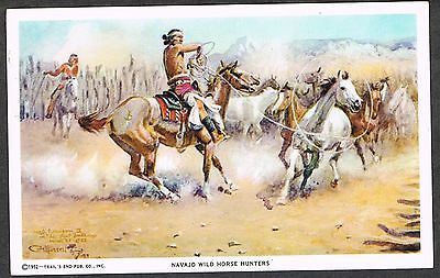 Title (ebay affiliate link): "Navajo Wild Horse Hunters" by Charles M. Russell on Trails End Card #1