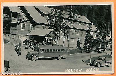 Holden, WA, Old Real Photo of Bus at Post Office, circa 1940s
