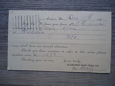 Title (ebay affiliate link): Business Account Postcard, Clarkson Saw-Mill Co. Leeper, Missouri 1901