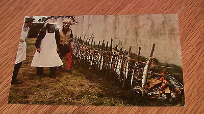 Vintage Native American Postcard--Indian Style Salmon Bake Annually in September