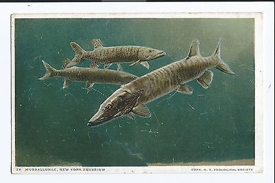 Vintage Postcard Muskallunge Pike Family New York Aquarium "Phostint" Unposted