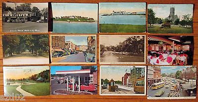 12 MASSACHUSETTS Postcards - HOLBROOK / HULL / DORCHESTER / QUINCY / CAMBRIDGE +