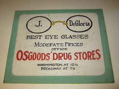 Old 1920's OSGOOD'S DRUG STORE Advertising SIGN DeGloria Eye Glasses OAKLAND CA.