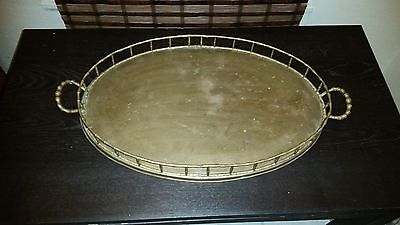 Title (ebay affiliate link): Vintage Antique Heavy Brass LG Oval ServingTray Bamboo Gallery Hollywood Regency
