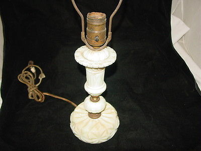 VINTAGE SLAG GLASS TABLE LAMP NEEDS REWIRED CREAM IVORY COLOR W/ DARKER VEINS