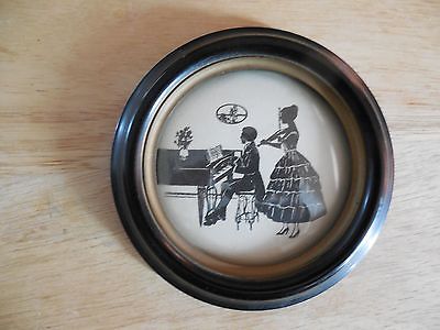 sm. Vintage Musical Moments round convex glass Silhouette picture frame 4 1/2"
