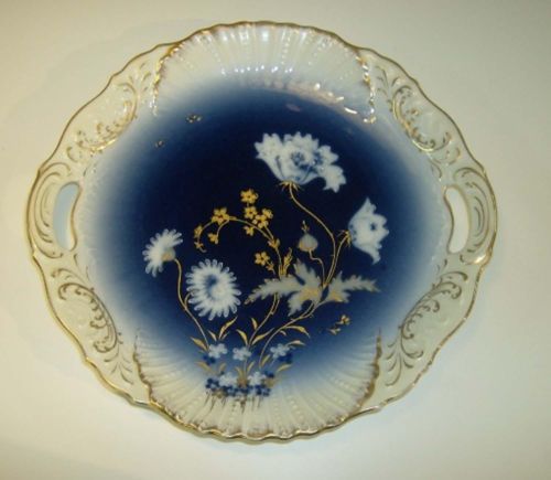 Hand painted antique Bavarian china serving plate cobalt blue / flowers