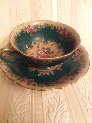 Tea cup and saucer "Occupied Japan" beautiful teal blue colored ceramic