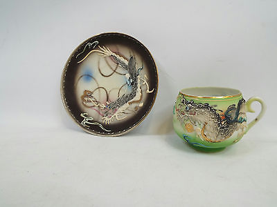 Dragonware Green Black Stamped Geisha Portrait Face Tea Cup & Saucer