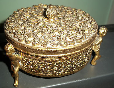 vintage cherub dresser trinket box 1950s by globe 24 kt. gold plated
