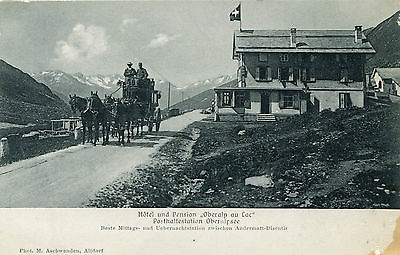 original 1905 postcard Post Coach halt station Hotel Oberalp au Lac Switzerland