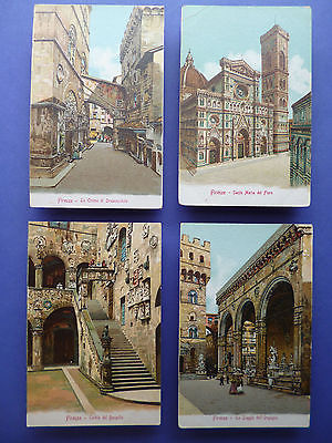 Set of 4 Early '900s nice, color postcards from Firenze, Toscana, Italy