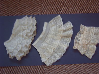 # VINTAGE CUFFS - 3 SINGLE LACE FRILLED CUFFS - VERY GOOD - DOLL'S CLOTHES? [A9]