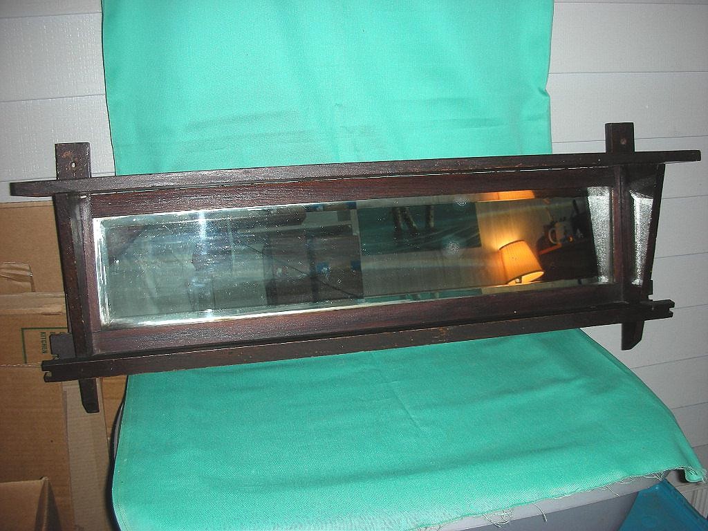 Old Wood Cup/Saucer/Plate Shelf w Mirror