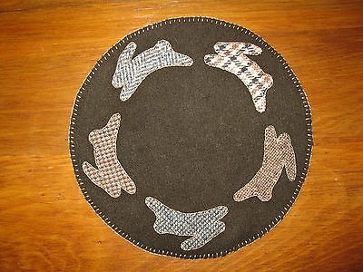 Primitive Bunny Chase Wool Mat for Easter/Spring