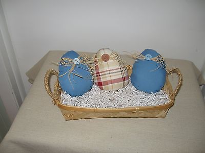 Handmade Primitive Fabric Easter Eggs Bowl Fillers w/buttons Set of 3