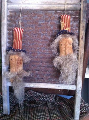 Primitive Uncle Sam ornies Ornaments pair set grungy flax Americana