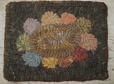 Folk Art Primitive Hand Hooked Rug Mini Flower Mat