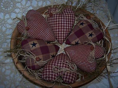 Primitive grungy heart bowl fillers set of 6 blue stars, barn red & tan