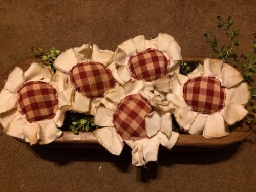 Title (ebay affiliate link): Homemade Primitive Grungy Red Fabric Flowers Ornies/Bowl Fillers Set Of 5