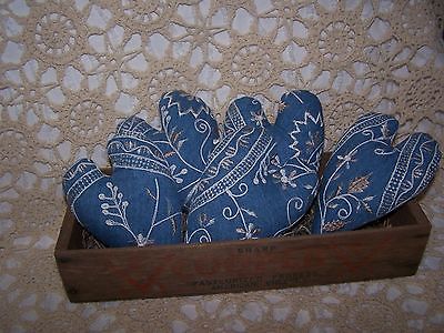 Primitive heart bowl fillers, blue, white, tan set of 5