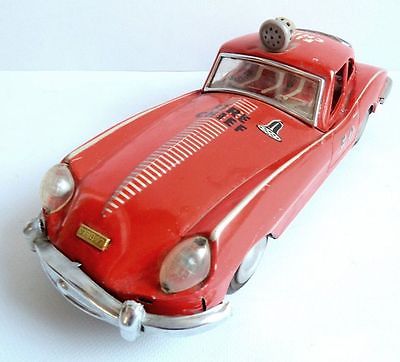 1965's Antique Red China ME 627 Battery Tin Toy Fire Chief Sport Car ME-627