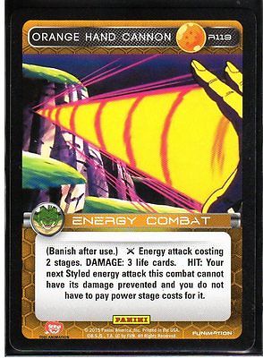 Title (ebay affiliate link): DBZ Heroes & Villains TCG: 2 x ORANGE HAND CANNON Rare Cards # R119