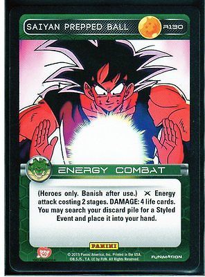 Title (ebay affiliate link): DBZ Heroes & Villains TCG: 2 x SAIYAN PREPPED BALL Rare Cards # R130
