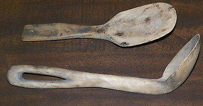 LOT 2 ANTIQUE VINTAGE HAND CARVED PRIMITIVE WOOD LADLES SPOONS HANGING HOLE