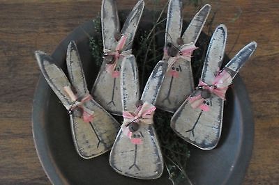 5 Primitive Easter Wooden Bunny Ornies/Bowl Fillers with Rusty Bell