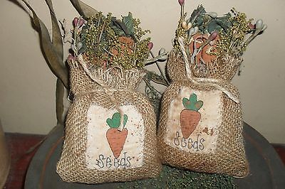 2 Primitive Grungy Easter Carrot Burlap Sack w/ Sweet Annie Fillers/Ornies