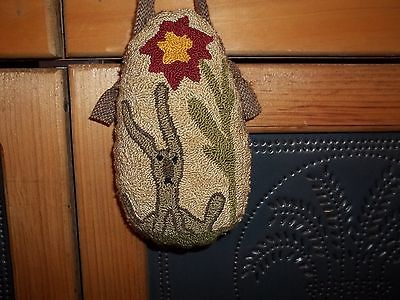 Primitive Punch Needle Easter Egg Cupboard Hanger Folk Rabbit and Flower