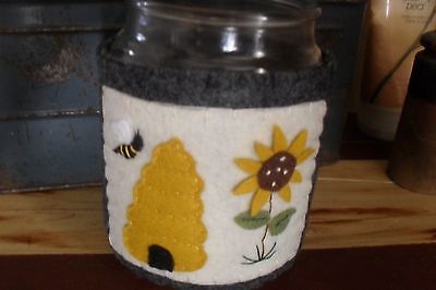 Primitive Easter/Spring Penny Rug Candle Wrap (Bee Hive Sunflower)
