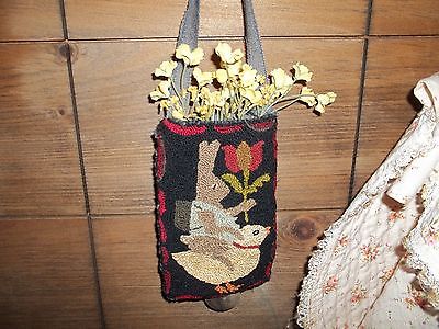 Primitive Punch Needle Olde Time Friends Hanging Pocket