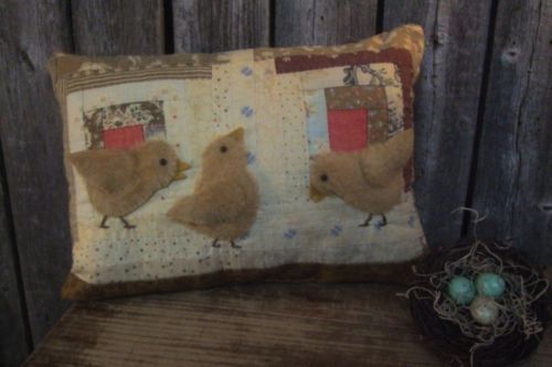 Antique Primitive Baby Chicks Easter Spring Quilt Pillow Folk Art
