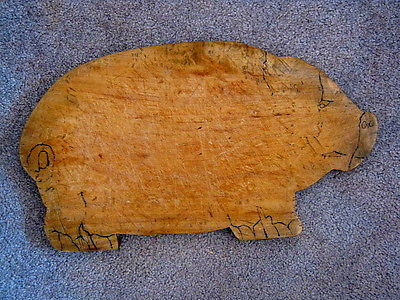 Title (ebay affiliate link): Old Solid Piggie Cutting/Bread Board-Well Used-Hanger Wire On Back-Great Patina