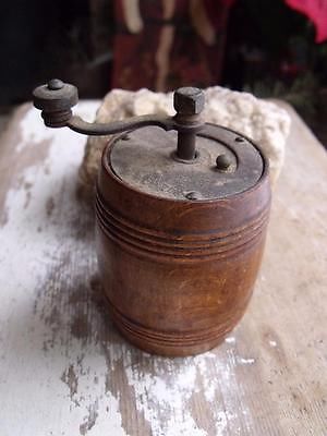 Small Old Primitive Vintage Wood Barrel Shaped Pepper Mill Grinder Marlux France