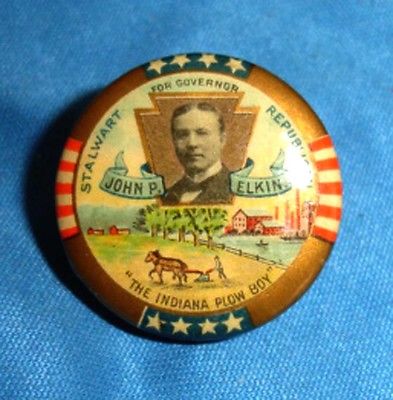 Title (ebay affiliate link): Stalwart Republican 1902 For PA Governor Pin-John P. Elkin Indiana Plow Boy!
