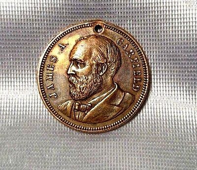 Title (ebay affiliate link): 1881 James A. Garfield 25 mm Gilt Brass "Canal Boy" Political Medal Campaign